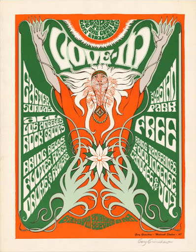 He primarily wants to convey the images of love, dancing and enjoyment. The movie is bookended by a brunette dancing girl wearing a red shirt and carrying flowers. Perhaps Les thought she was attractive or just that she embodied the culture. He shows her at the beginning, during the middle, and at the end. He shows a lot of signage, most of which has words of love. He shows many shots of flowers and as much dancing as possible. Probably half the film is just people dancing. In some scenes they are dancing aggressively, wearing face and body paint with hippie imagery. At other times they are dancing playfully, like when groups of people are holding hands and running around, which maybe shouldn’t be considered dancing at all. Regardless of one’s opinion of the short-lived hippie movement, Les Blank captures its essence.