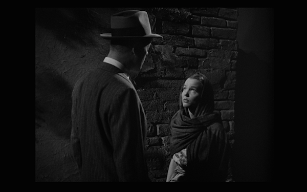 Another way this diverges from the traditional noir is in how it handles the femme fatale. In many noir films, the femme fatale has a bit of irresistibility and the hero cannot help but fall for her charms. This time, Marjorie Lundeen fills that role and appeals to Gagin, trying to lure him with both her looks and the potential for money. Her motivation is the same as most noir females. She is not on Gagin’s side and will double cross him anyway. He rejects her categorically. A significant scene where this is demonstrated is when he takes Pila to dinner. At first she seems out of place, even remarking on how unusual it is to eat a fruit cocktail. Marjorie approaches during the meal and asks Pila to step aside so the grown ups can talk. Pila, obedient as ever, obliges. Gagin hears out Marjorie’s offer, but inevitably sends her away for the lower class and more demure Pila.