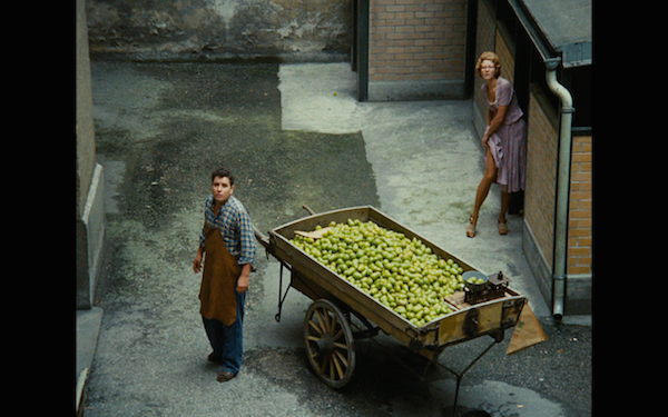 The character of Hans is a disappointment to most in his life. When he returns from the military, after finding out that someone else did not make it home, his own mother says, “the best are left behind while people like you come home.” We learn later that his military career ends with a sexual transgression. He then becomes a cart merchant, peddling fruits for a small profit in order to support his wife and daughter. When he isn’t working, he drinks with his friends and does not want to be disturbed. In one pivotal scene, when his wife Irmgard (Irm Hermann) demands that he come home, he throws a chair at her. Later, when questioned, he beats her.